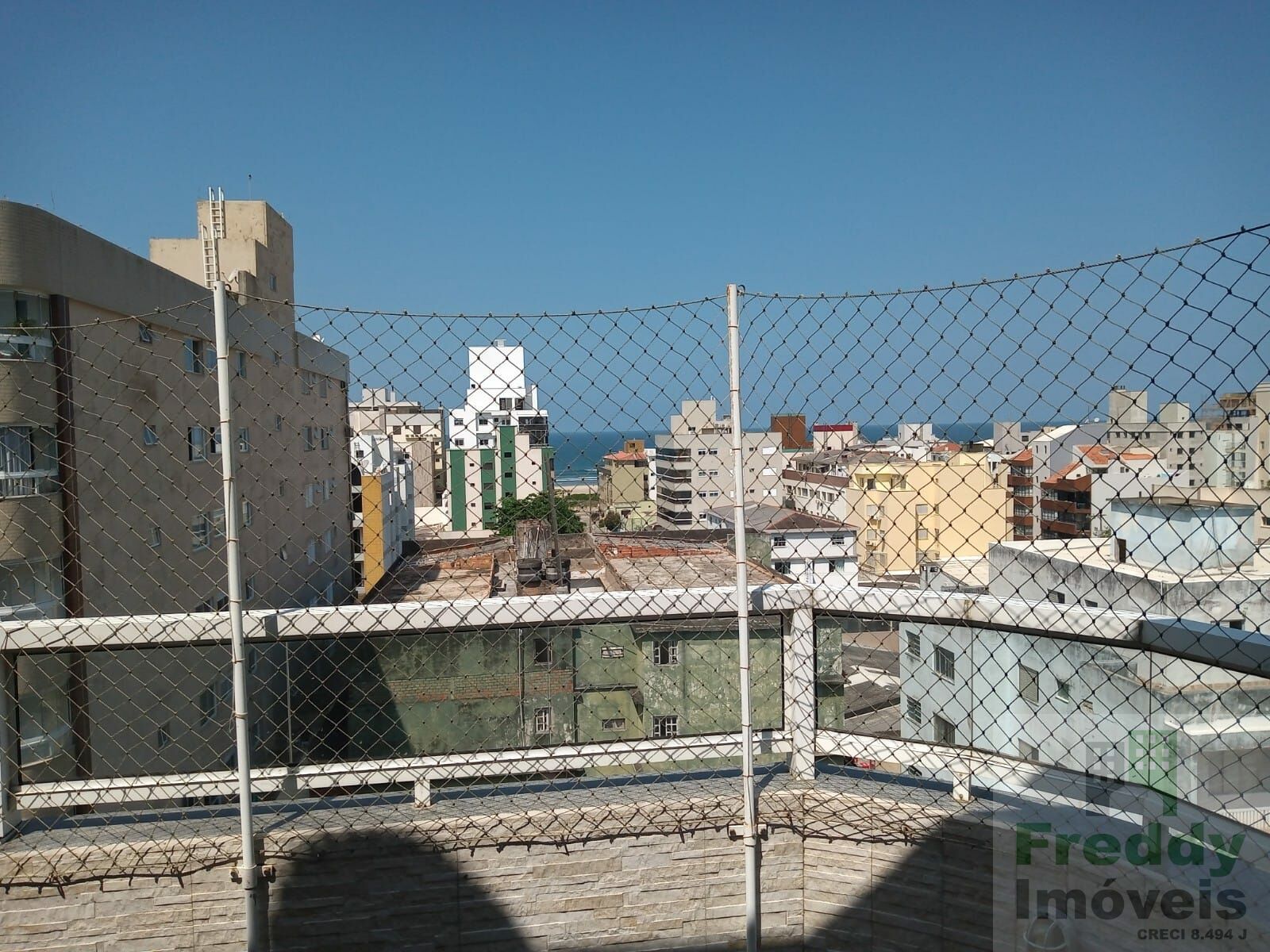 Cobertura com vista para o mar e churrasqueira.