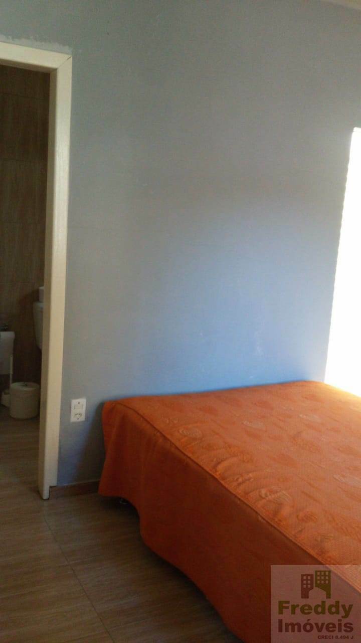 Casa com 3 quartos, sendo 1 suite, banheiro, sala, cozinha, área com churrasqueira, área de serviço, garagem para 1 carro.