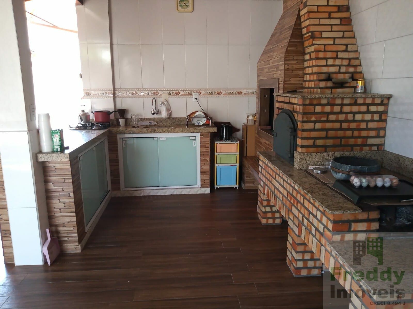 ChurrasqueiraDepósitoEspaço GourmetForno à lenhaForro de madeiraJardimMuradoQuintalVaranda