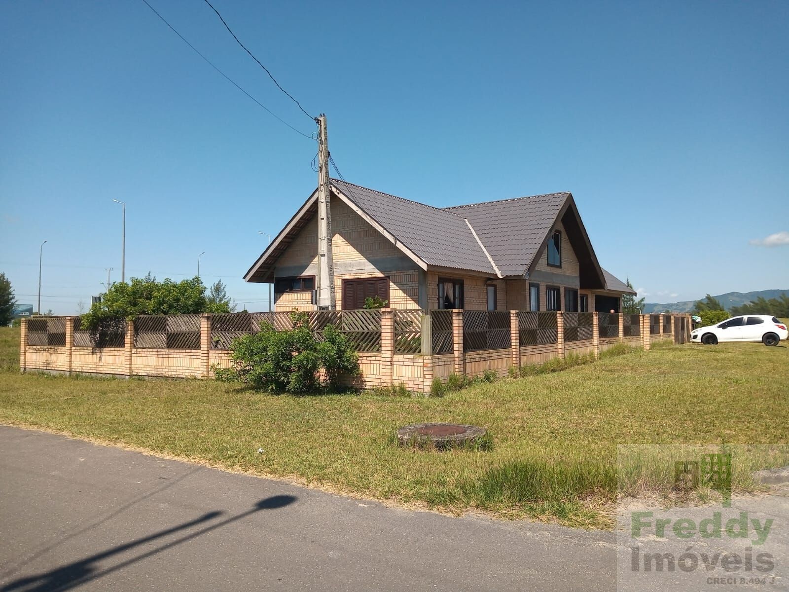 De alvenaria em construção, o imóvel de tijolo à vista tem 210 m2, três quartos, sendo duas suítes, closet, garagem para dois carros e demais peças bastante espaçosas.