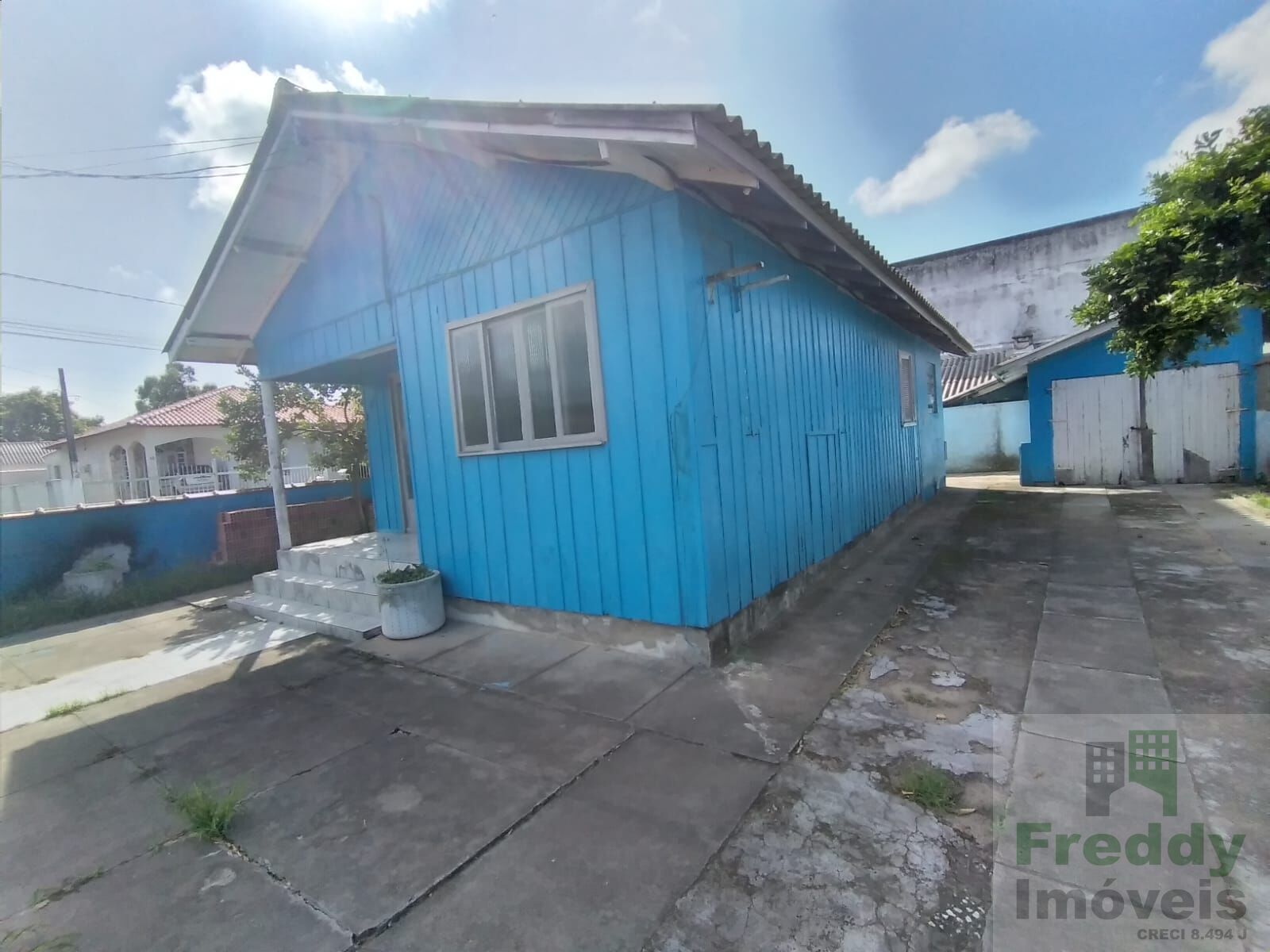 Casa de madeira e garagem lateral aos fundos