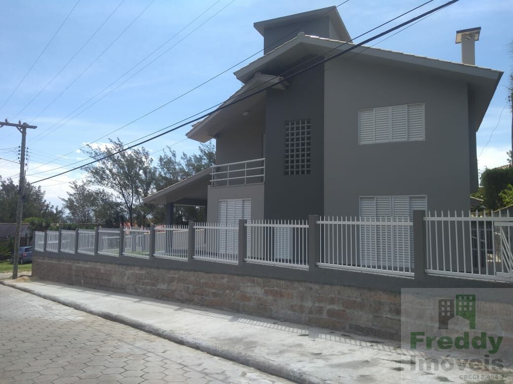 Garagem coberta para 2 carros e vaga para aproximadamente 4 carros. Laje inclinada, telha esmaltada, aberturas externas em alumínio, na casa tem churrasqueira, fogão a lenha. Canil.